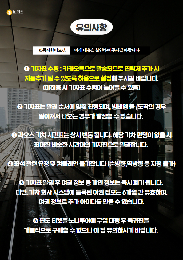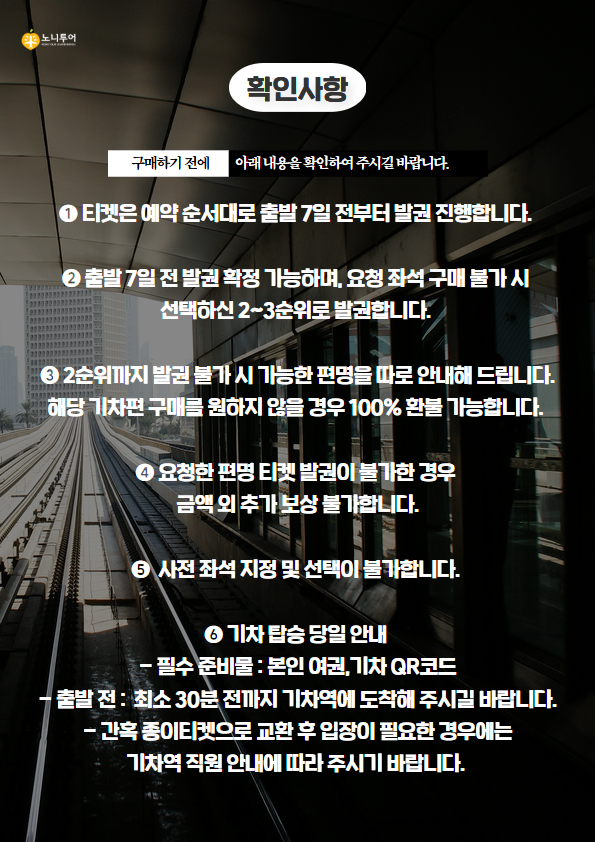 🌟 [필수] 예약 후 기차표는 카카오톡으로 발송됩니다.