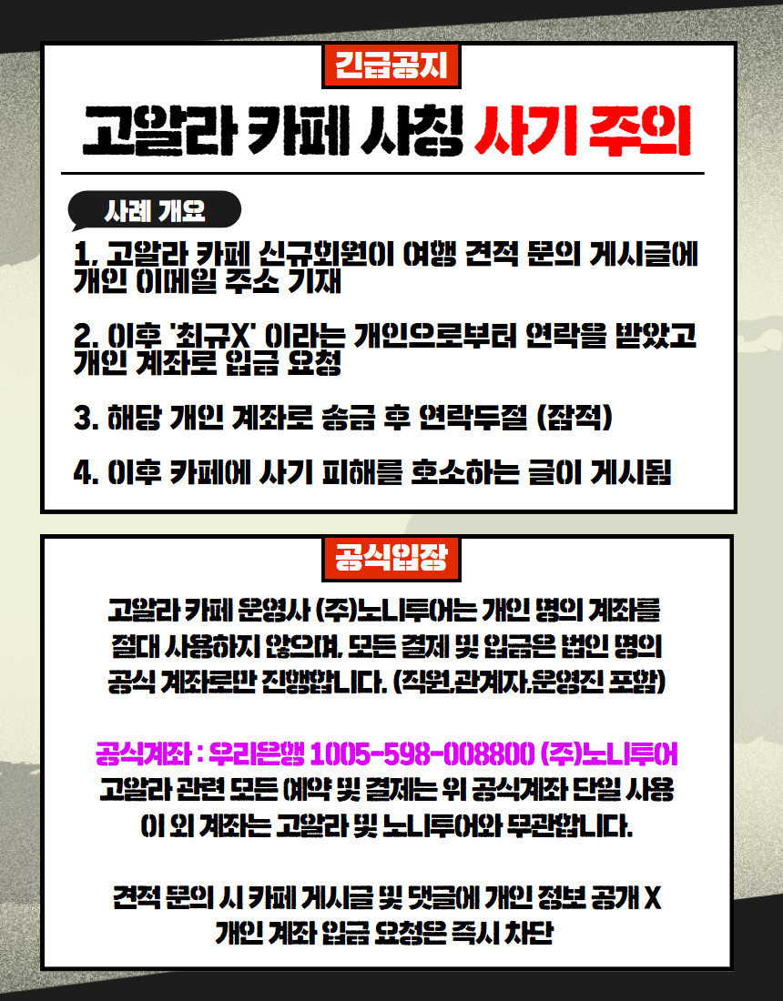여행자분들의 이해와 협조에 감사드리며 편안한 여정을 위해 최선을 다하겠습니다! 🫡
